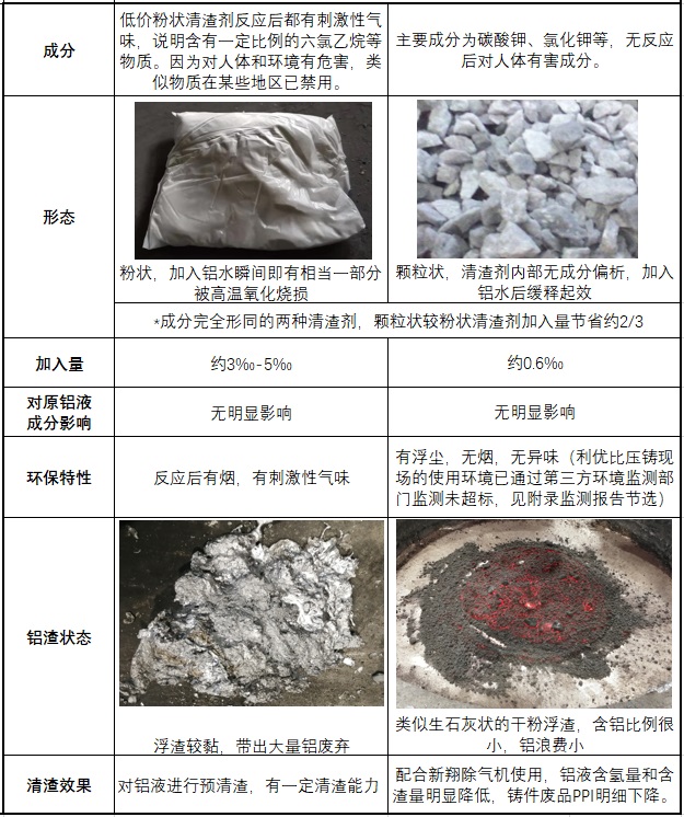 科林泰颗粒状与普通粉状清渣剂对比